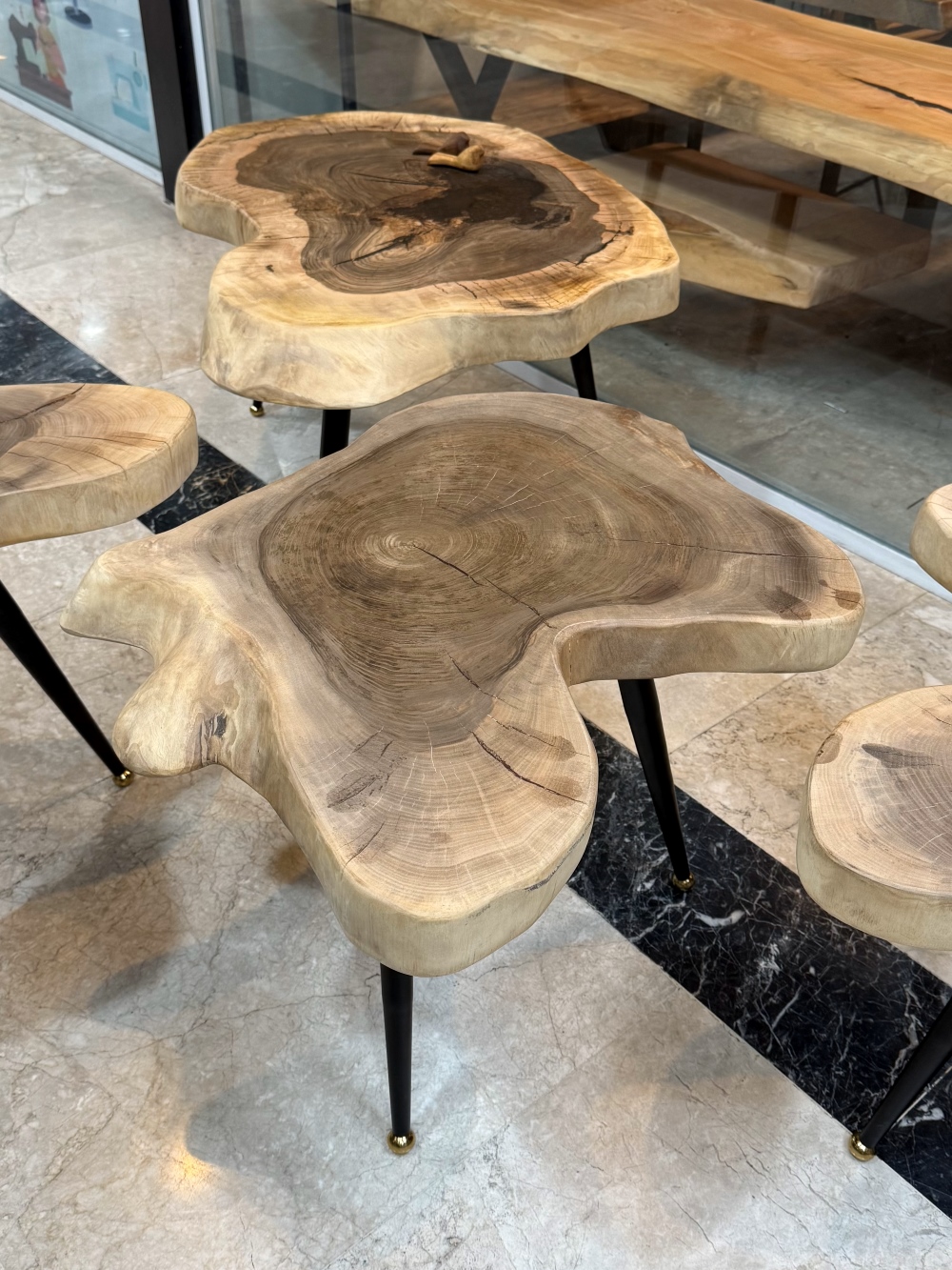 ست میز جلو مبلی و عسلی روستیک چوب گردو